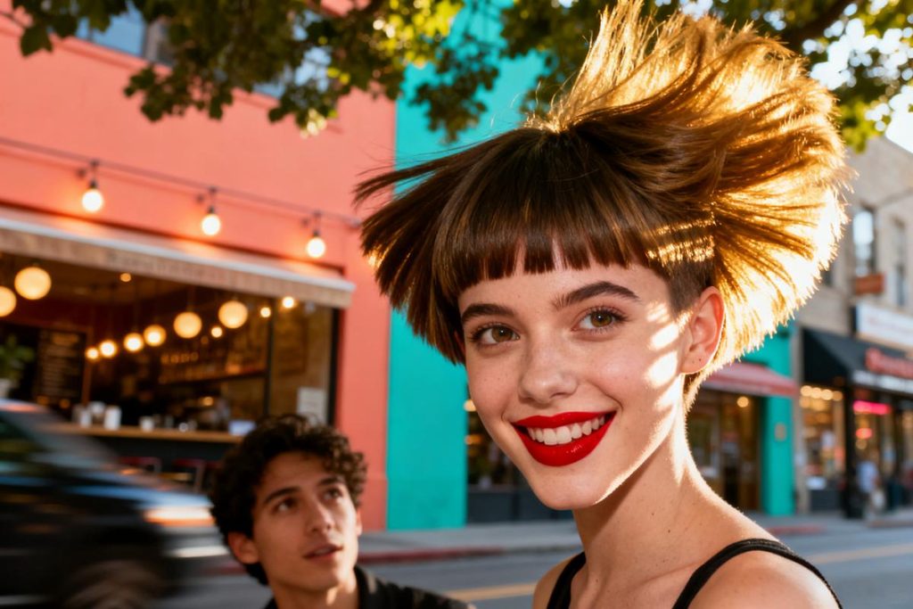 - Morphologie: convient à la plupart des visages si ajusté — ovale = libre, rond = volume dessus + longueurs arrière, carré = mèches effilées, fin = pixie‑mulet.